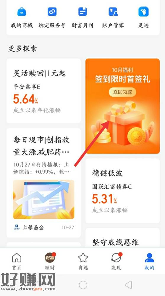 陆金所,签到的地方显示1888的,签到加浏览到2150分换4平安立减。