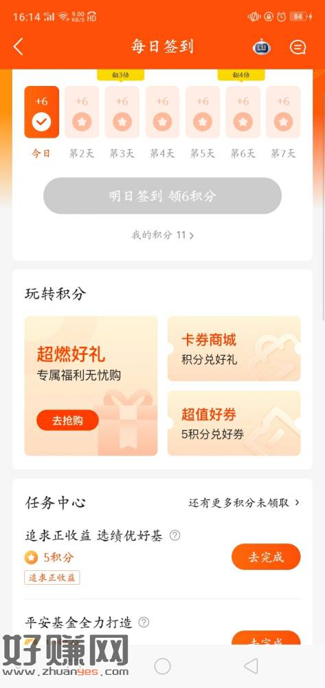 陆金所,签到的地方显示1888的,签到加浏览到2150分换4