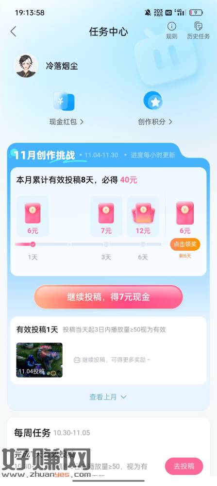 哔哩哔哩APP,我的-限时福利,很多人有这个八天任务,只要播放量达到50就行,从快手或者抖音上随便搬个视频就行,搬不要重复的,在哔哩哔哩上搜一下,只要没这个作者或者作者没发这个作品就可以,这样刚开始的基础审核通过就能通过了