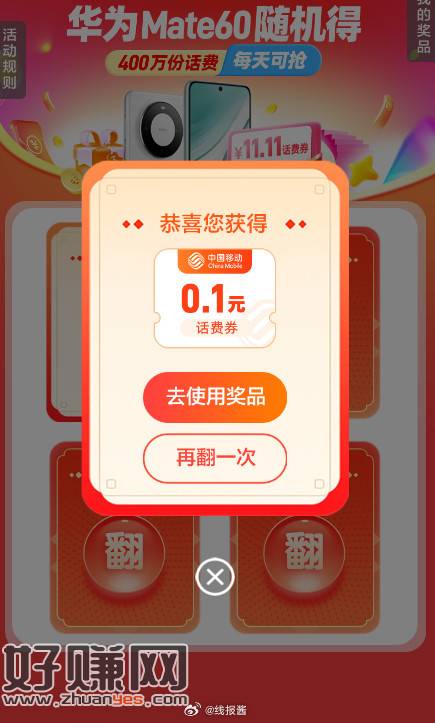 移动话费1毛,感觉有点抠门