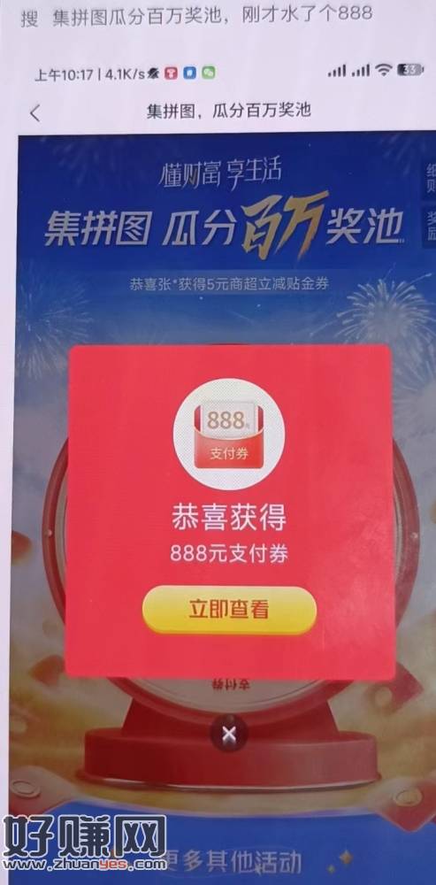交通银行搜集拼图瓜分百万奖池 刚才水了个888