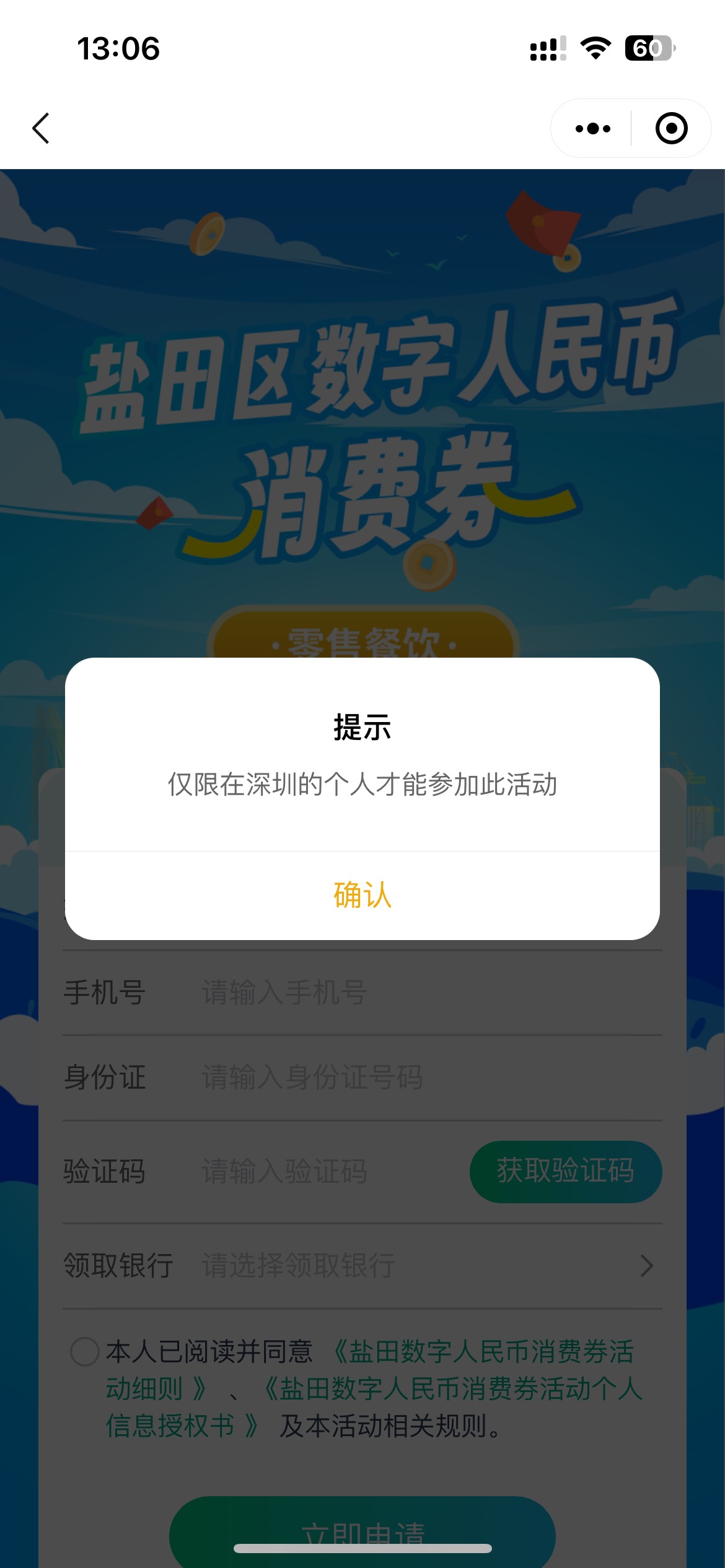 爱游盐田 小程序。不通用,深圳有老哥开车吧。谁破解一下,牛蛙定位盐田区了,授权定位提示这个。 登录会提示手机上限,不用管再点一下立即登录就进去了