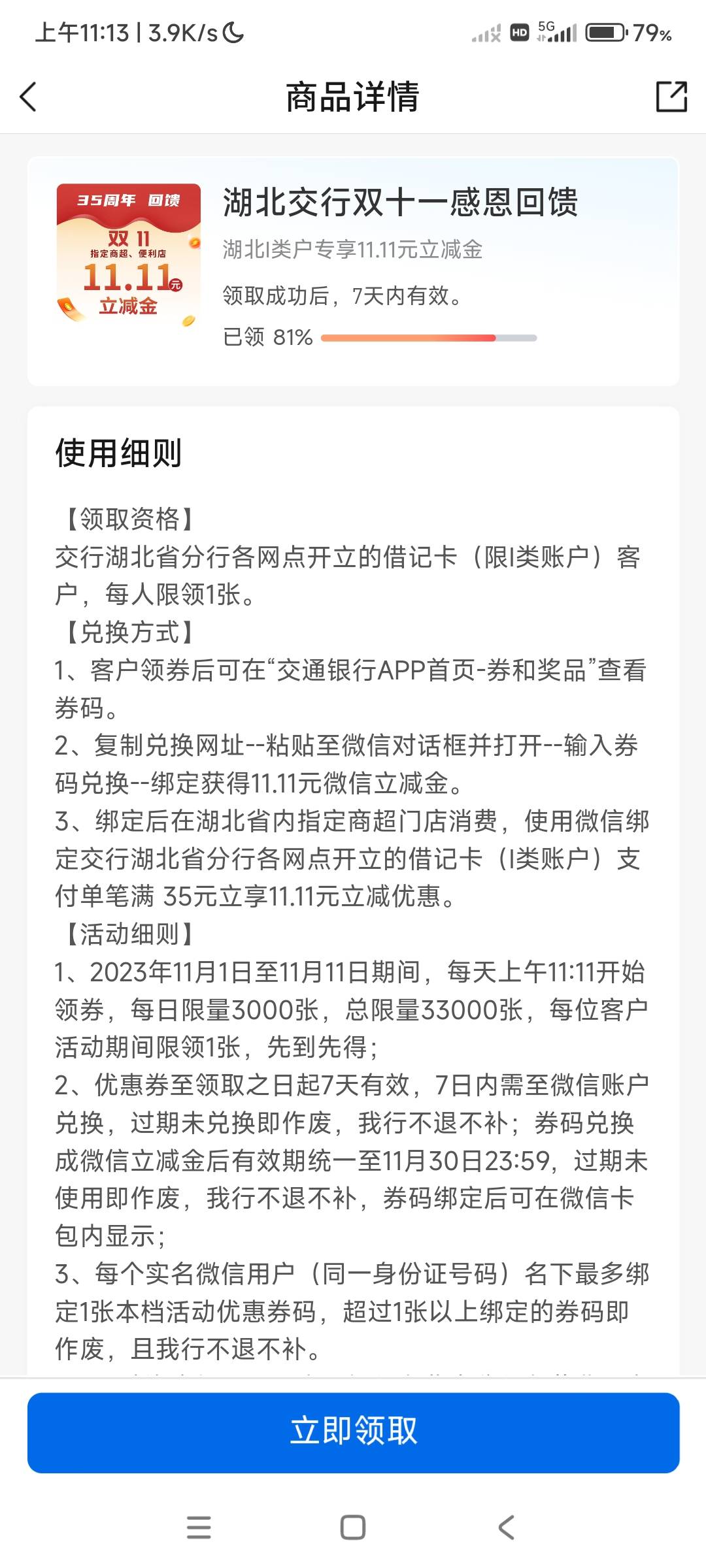 交通银行湖北双十一感恩回馈,限湖北1类客户专享