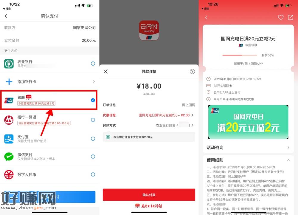 【网上国网使用云闪付满20减2元】新一期!网上国网APP->充电费满20元,使用云闪付支付立减2元,仅限今天限量12万个名额