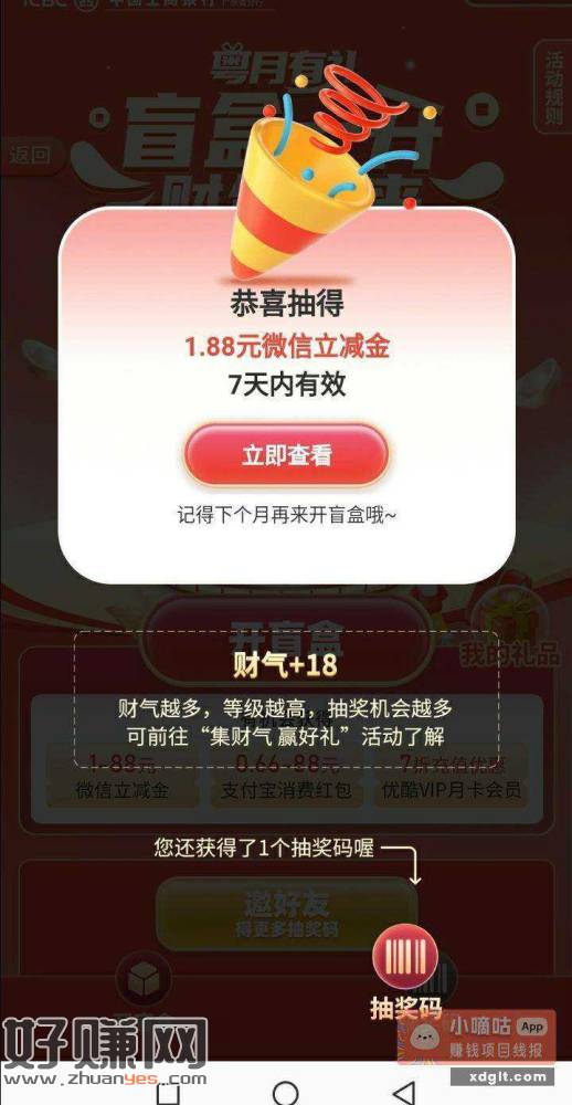 工行---广东(不含广州、深圳) 生活---本地服务---开盲盒、立减金更新