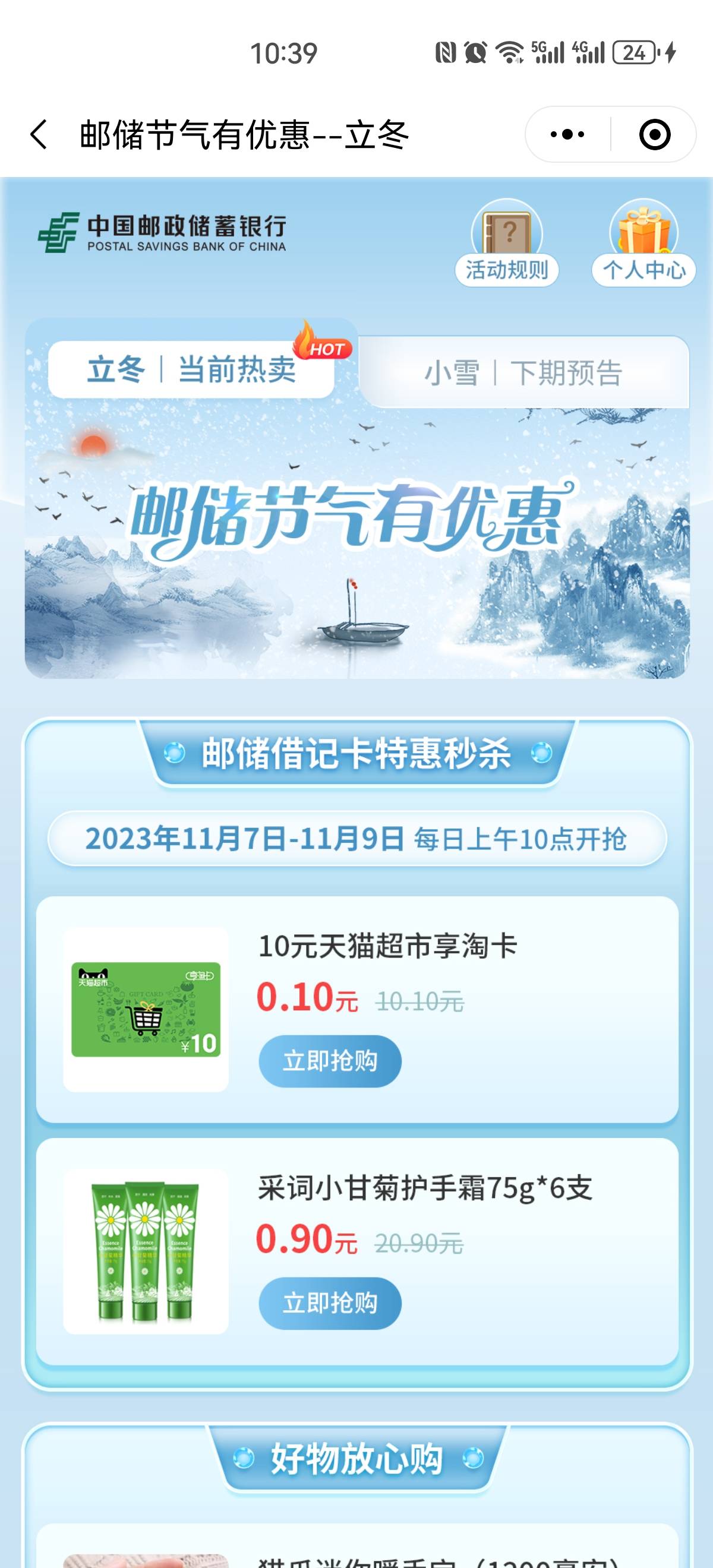 邮储好礼汇小程序,立冬节气秒杀