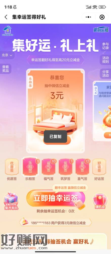建行搜:低碳生活 “能量抽奖” 可以中多次 有水