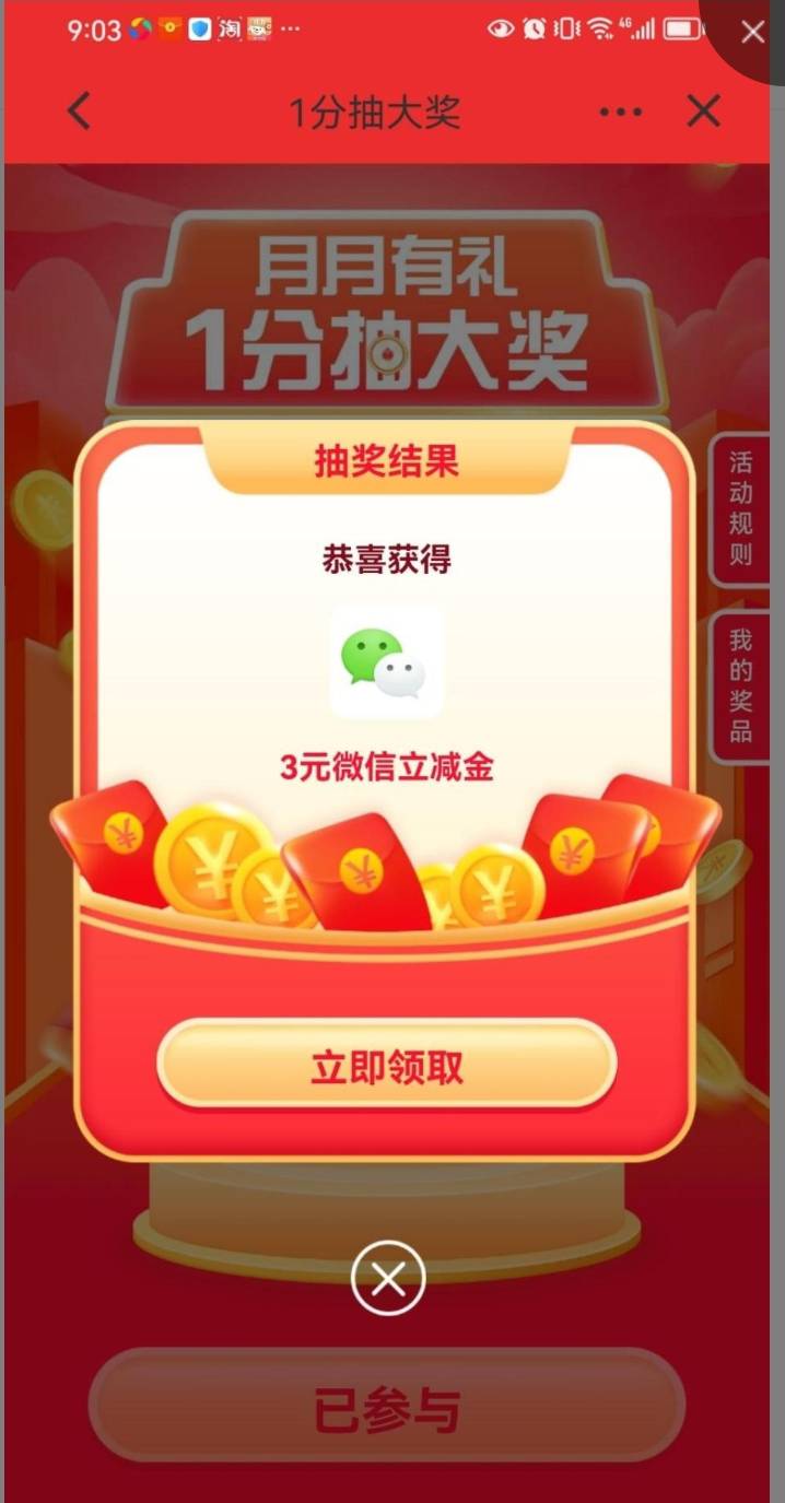 建行广东建粤有礼,月月有礼1分钱抽大奖