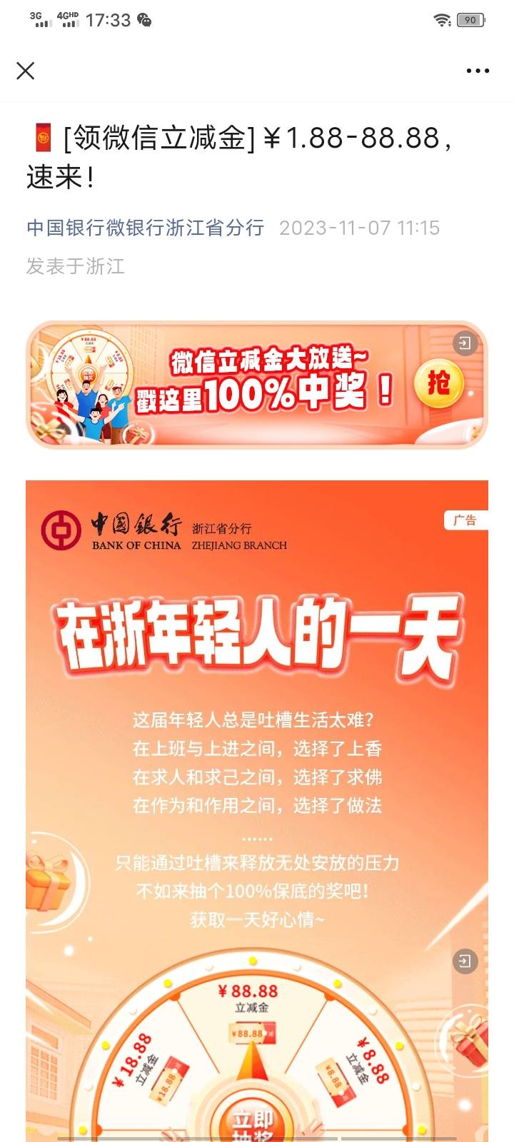 中行浙江本地专属,浙里大转盘抽奖