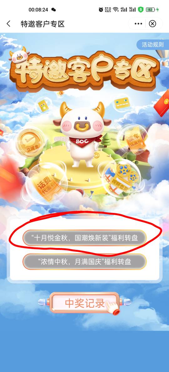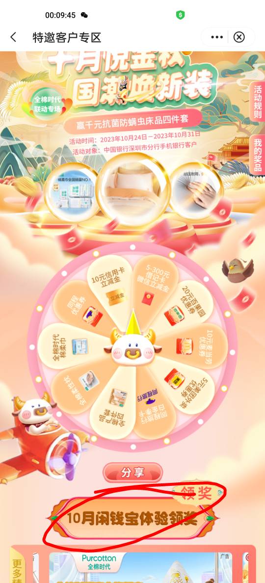 中行深圳特邀专区-十月金秋福利转盘,10月闲钱宝体验领奖