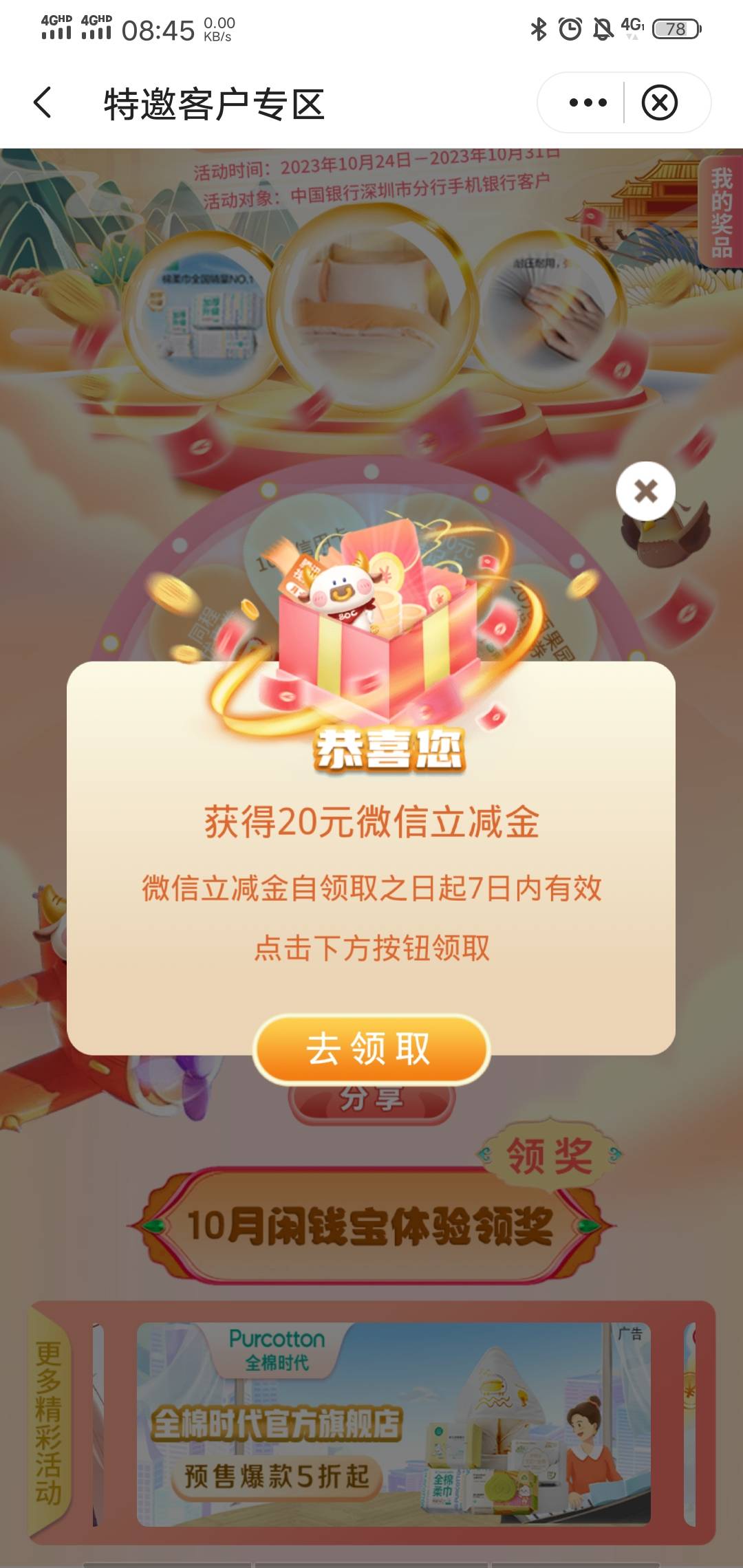 中行深圳上个月买闲钱宝的, 特邀专区抽奖