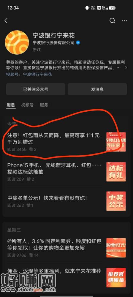 关注公众号 宁波银行宁来花