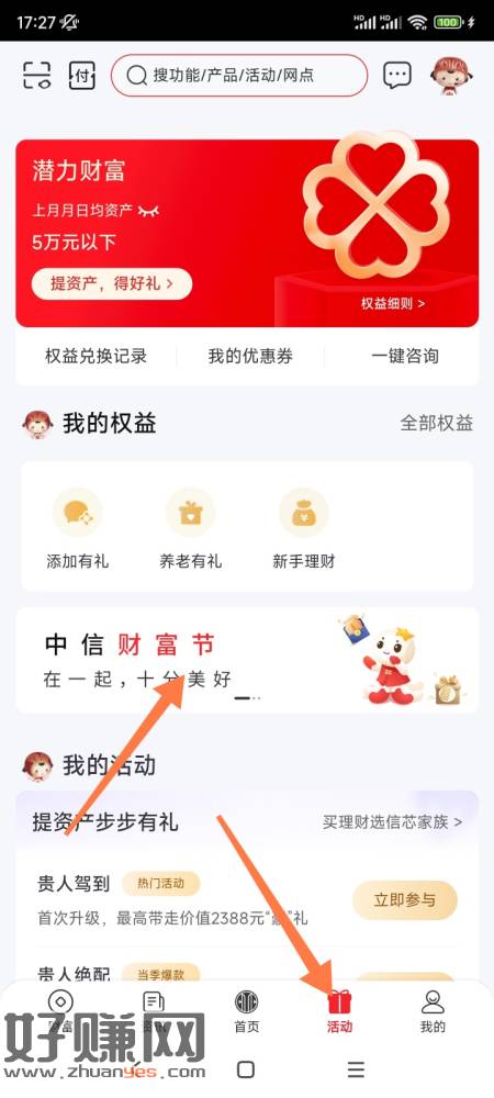 中信银行app-生活-中信财富节。抽奖,刚5中4。可jm撸,