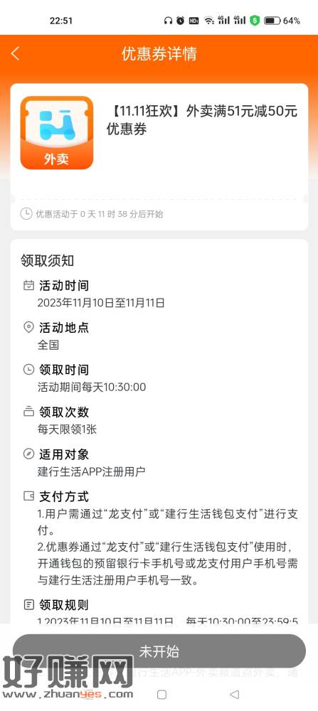 建行生活明天开始抢50外卖卷