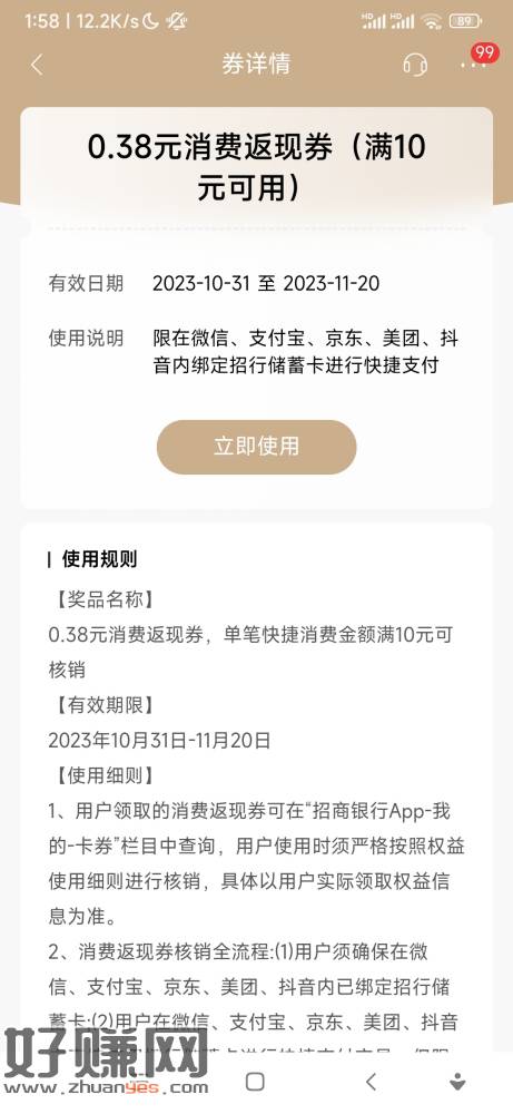招行返现券现在好像不是0.01了