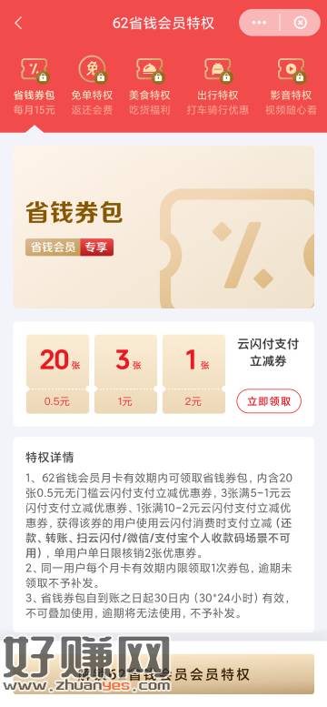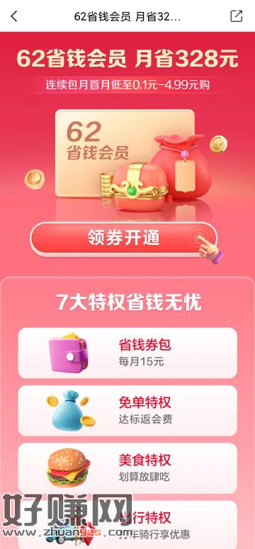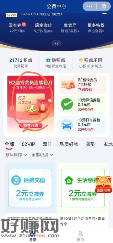 10毛 但是需要t12天 ysf会员中心-62连续包月 抽0.99-4.99省钱月卡 开通送24张券 一天t2张