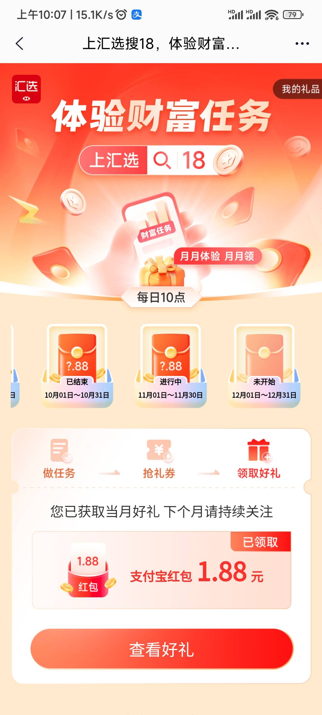 汇丰汇选app搜18,体验财富任务月月体验月月领,每日10点