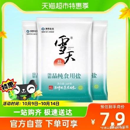 雪天加碘盐晶纯食用盐260g*3包