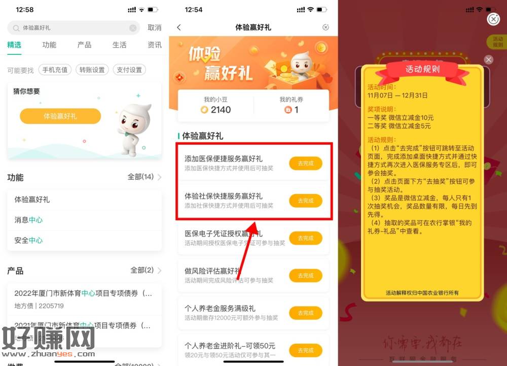 【农行体验好礼抽5~20元立减金】农行APP搜索“体验赢好礼”->完成2个添加桌面的任务->抽2个5~10元微信立减金 非必中