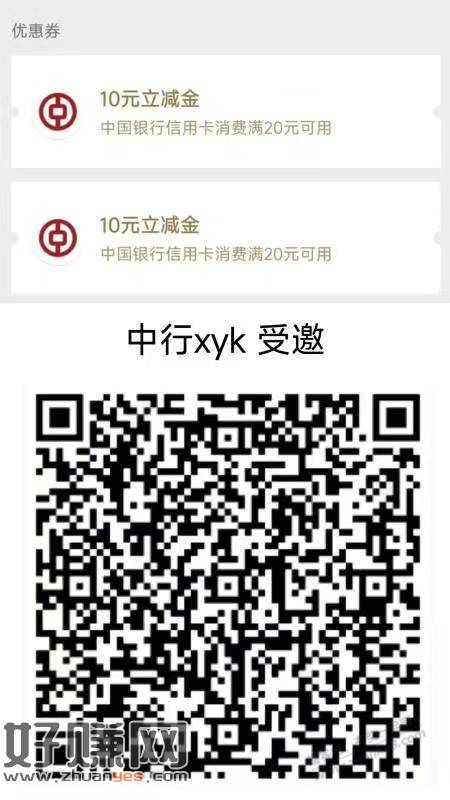 中行两张20-10微信立减金