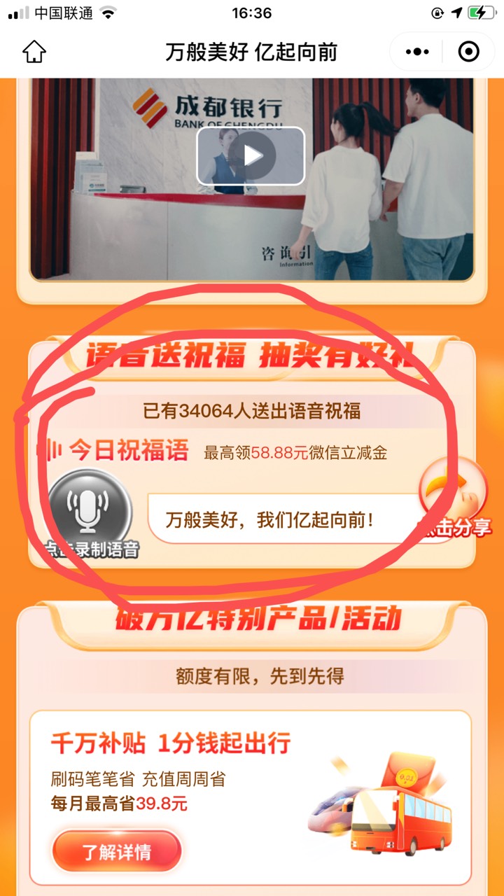 成都银行首页横幅,万般美好嘉年华庆典,语音送祝福抽奖