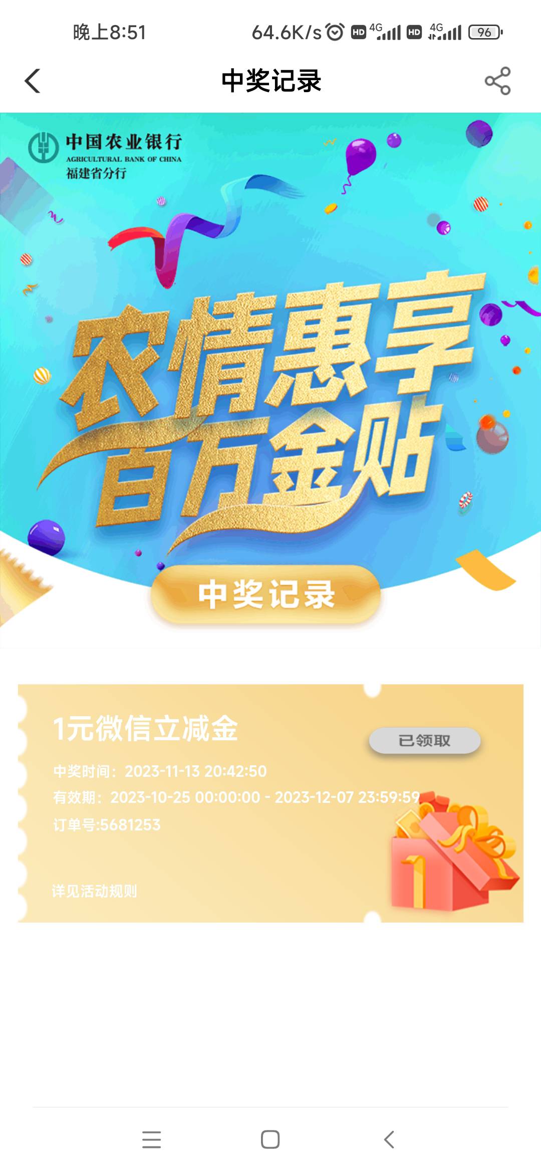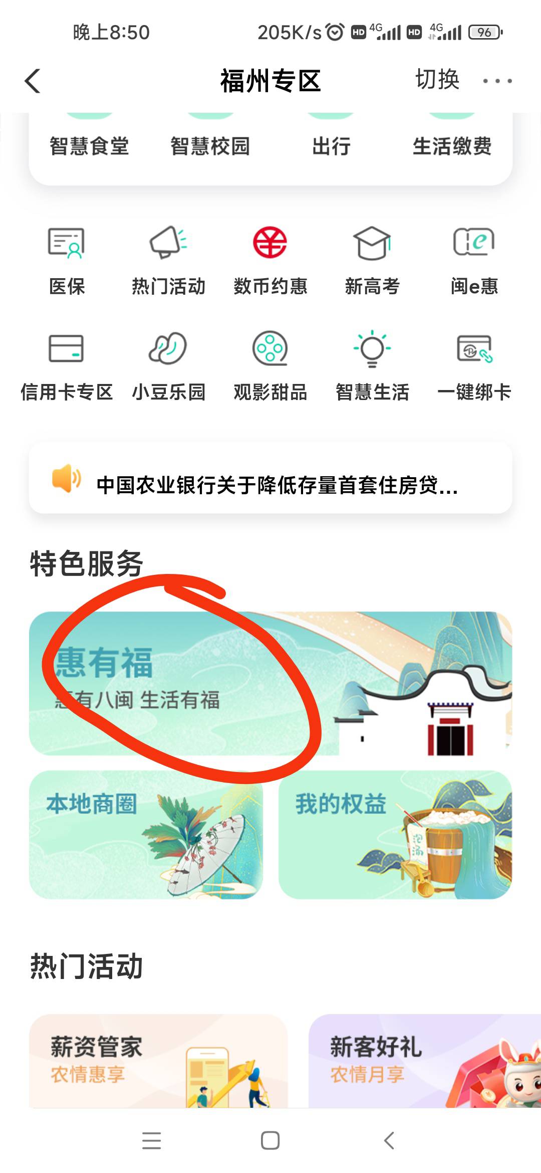 农行福州专区惠有福抽通用立减,一类可用我其他地方一类