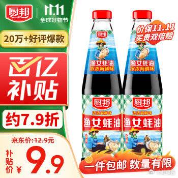 百亿补贴????9.9元包邮 ,厨邦 金装渔女蚝油700g*2瓶