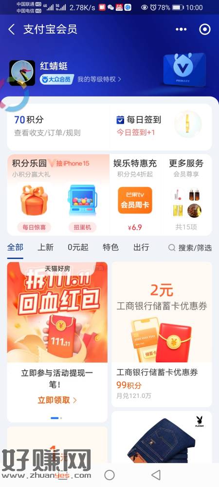 支付宝~我的~会员中心