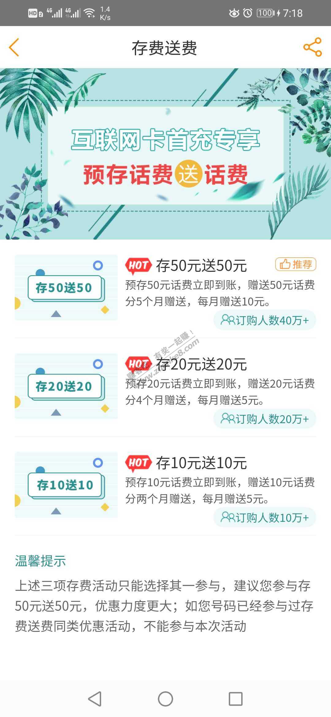 电信营业厅app,互联网卡预存50送50,好用荚果