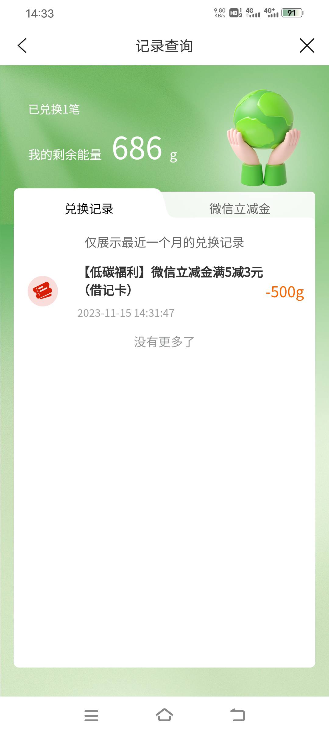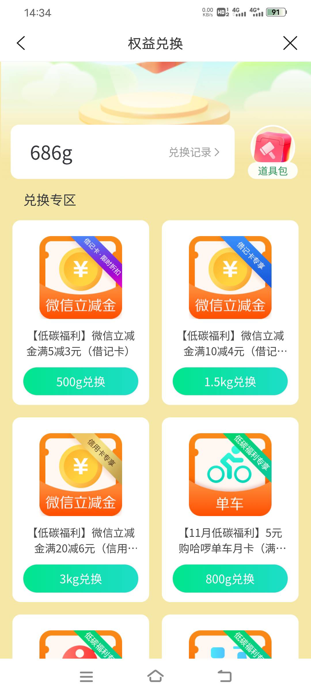 建行生活-首页-全部-低碳生活-权益,碳能量换立减金