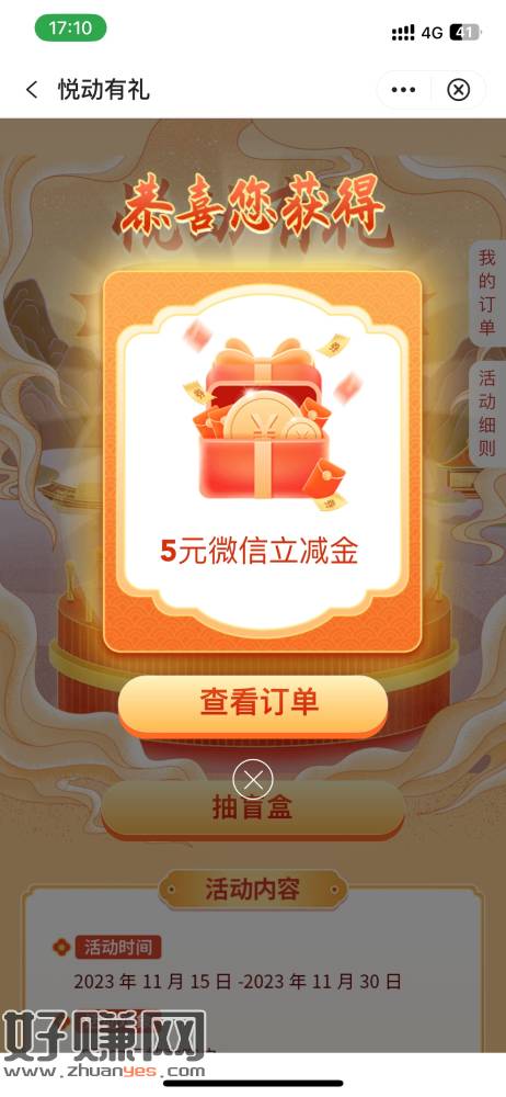 中行app右上角消息里边的营销优惠里面今天刚出的刚快冲刚中 5 立减