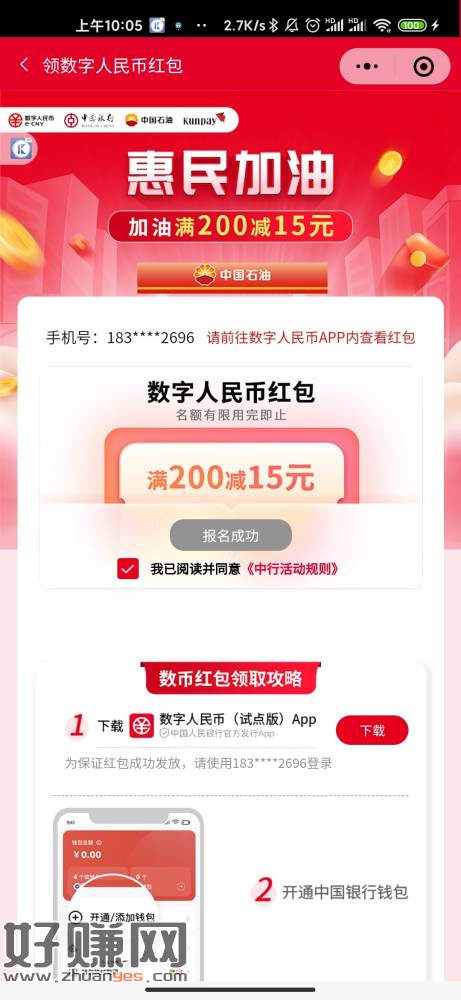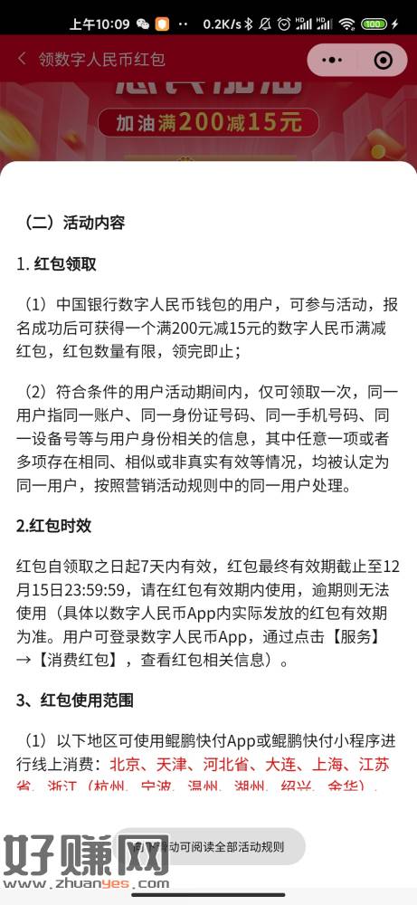 数字人民币中行200-15 可以充加油卡,其他暂时不知道