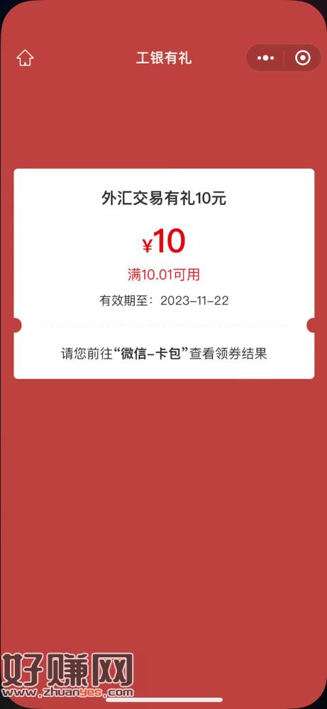 【体验“结售汇”,赢微信立减金】2023年11月1日-30日,登录中国工商银行App,进入任务中心,参与“体验有惊喜-结售汇”活动,即有机会赢3元微信立减金,也可复制本短信内容(¥3d5-9q2d¥)打开手机银行即可跳转活动页面,每位客户限抽取一次,奖品数量有限,抽完即止,如已参与请忽略。关注“中国工商银行客户服务”微信公众号享便捷金融服务。回复TDZX退订。【工商银行】