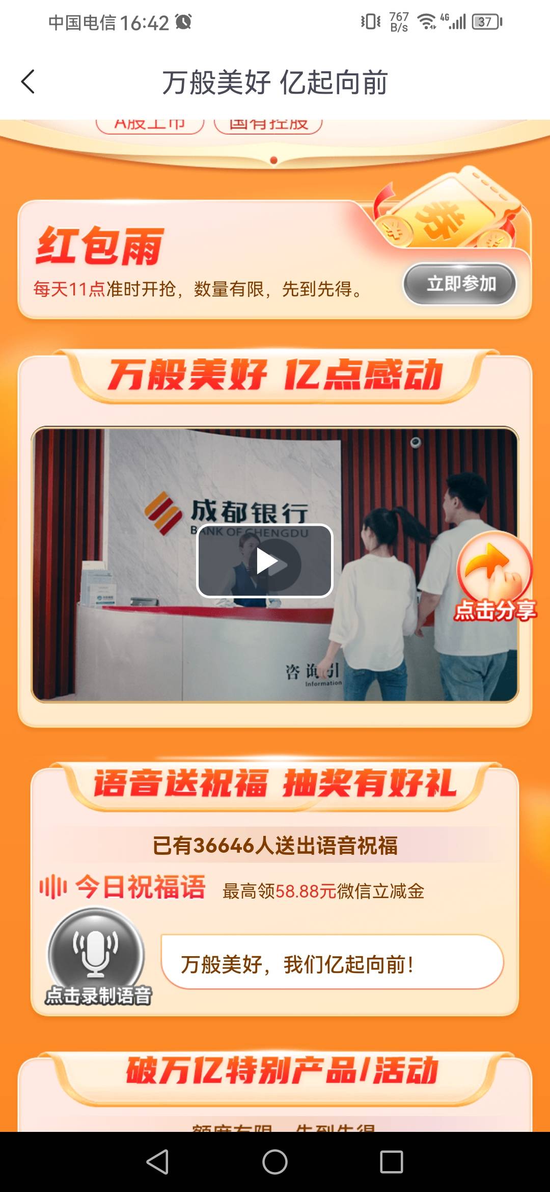 成都银行首页横幅,万般美好嘉年华庆典,语音送祝福抽奖