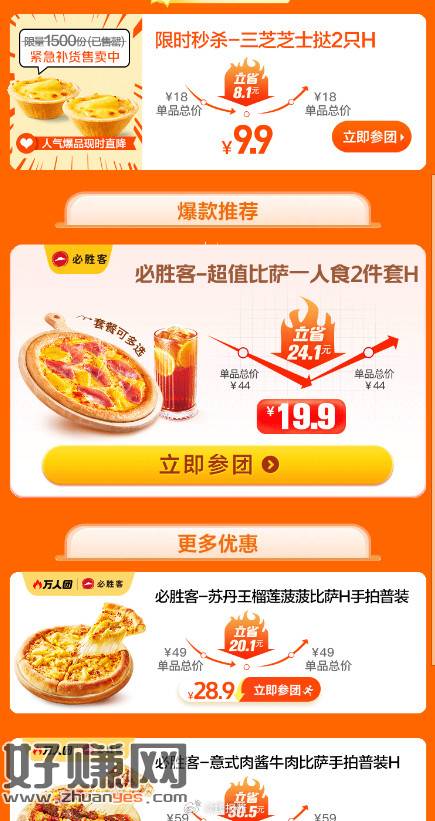 万人团×必胜客会场精选大牌,品牌补贴,低至9.9元