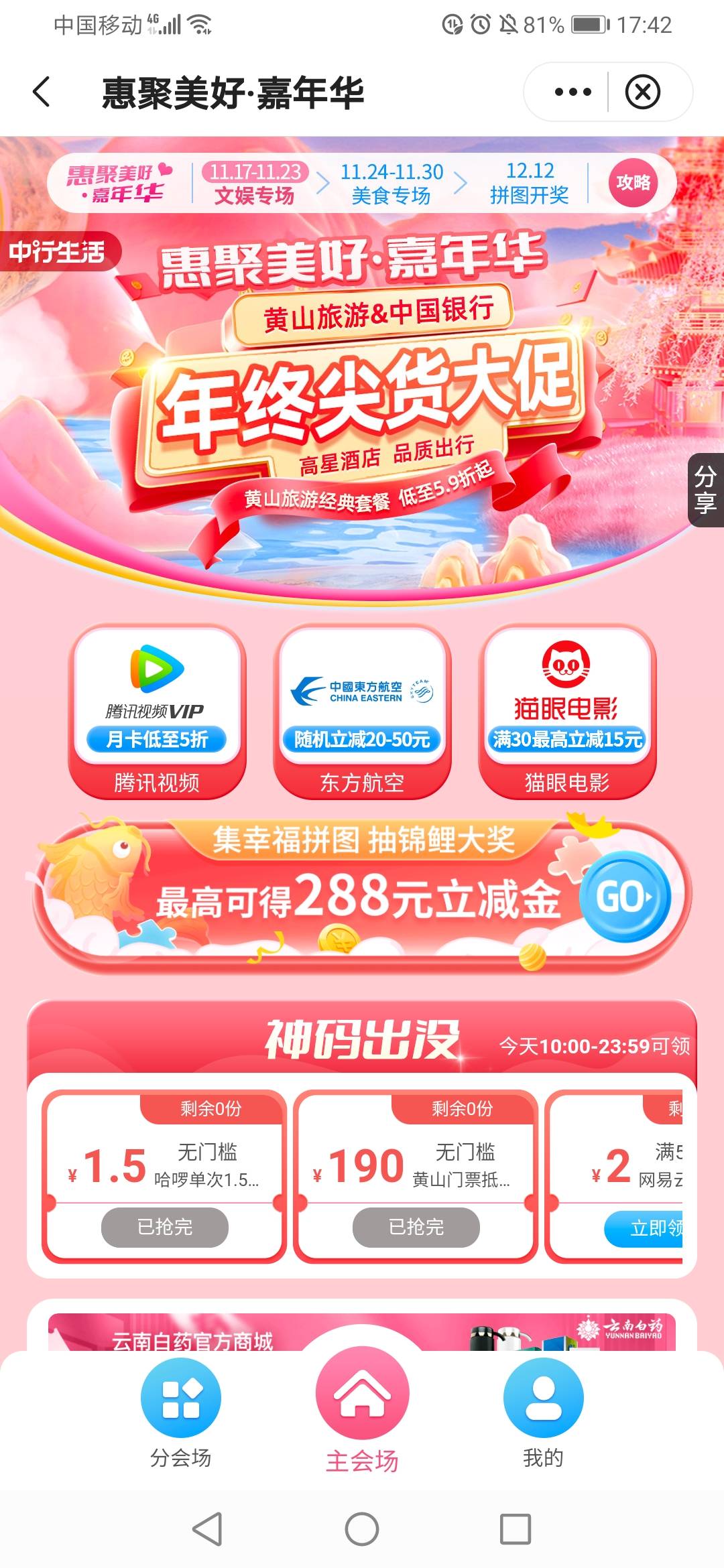 中行集拼图抽288立减金,入口福仔云游记