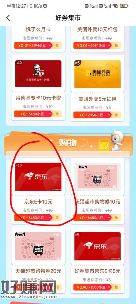 农行,我的,热兑榜单,右侧悬浮,进去后下滑到购物,e卡有货