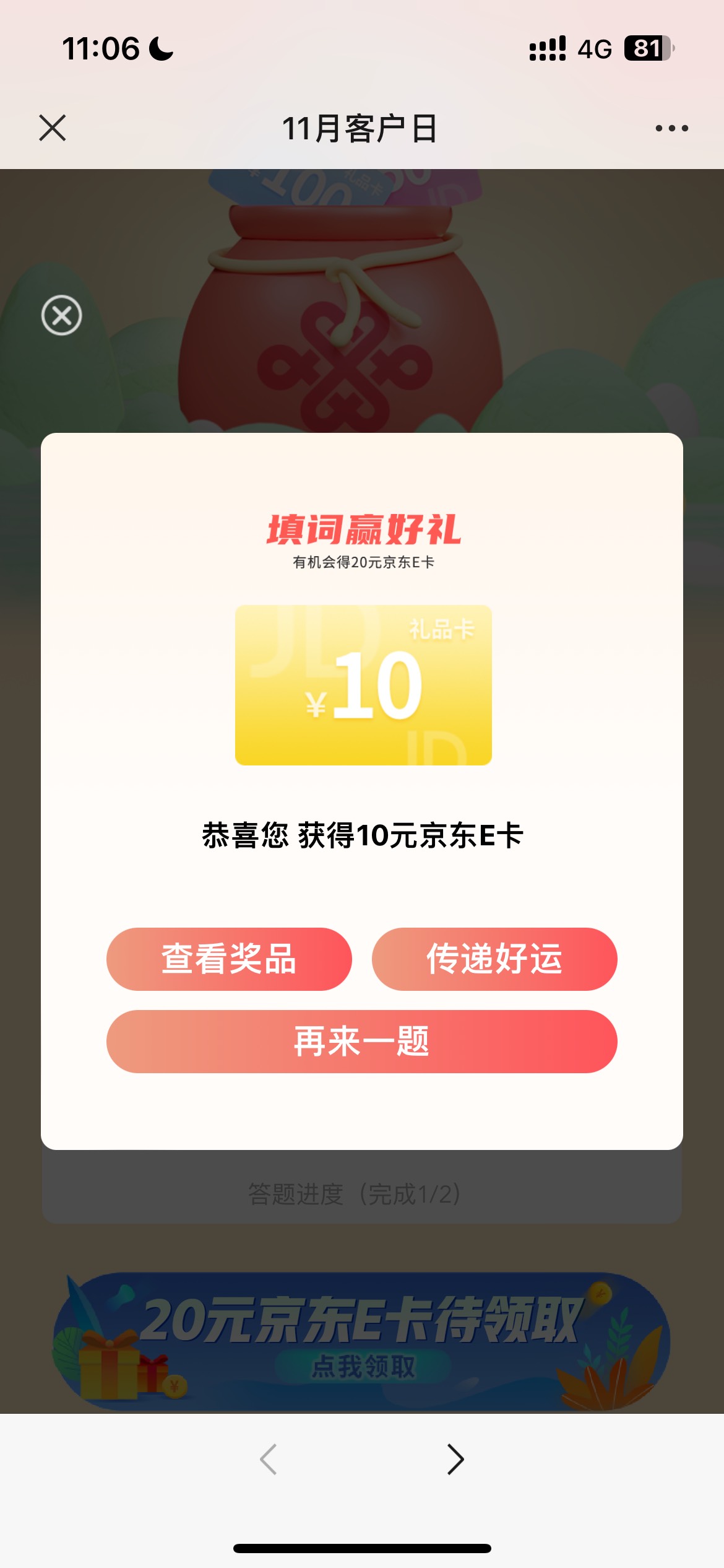 中国联通客服公众号-特色专区,11月客户日抽奖