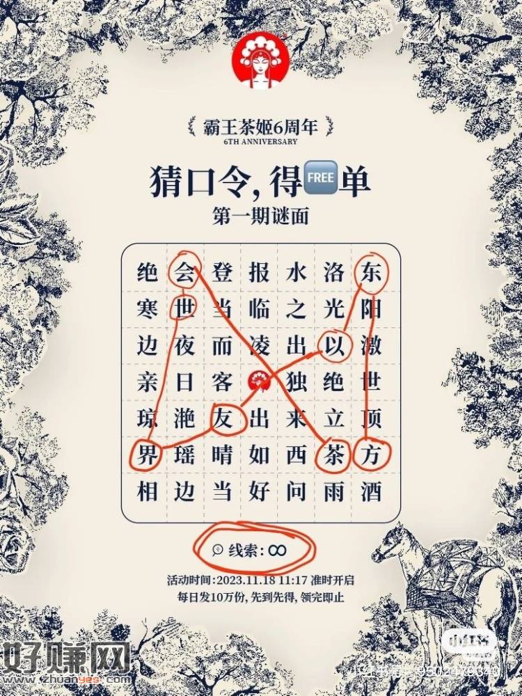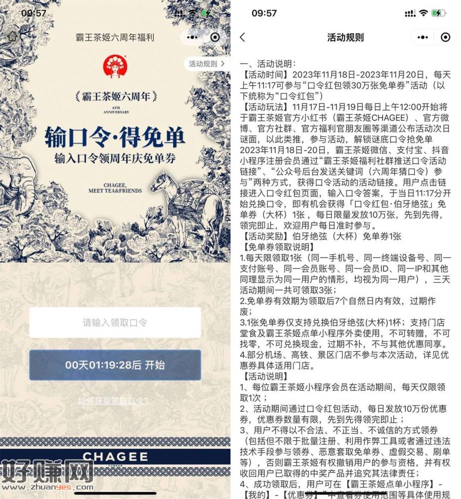 霸王茶姬六周年输囗令得免単