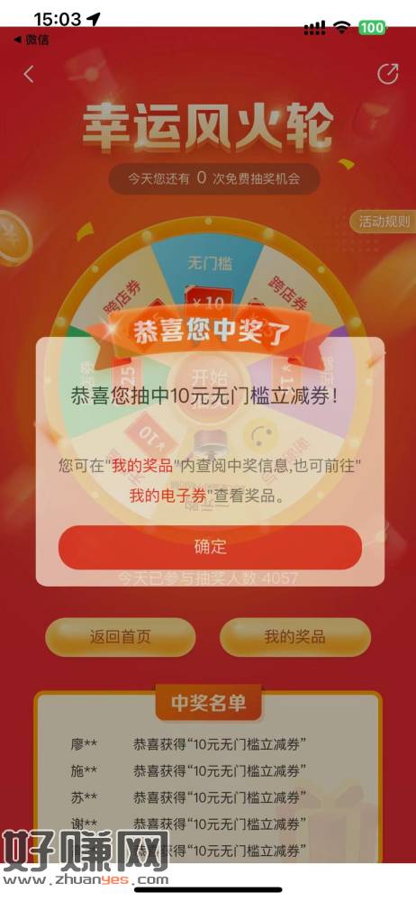 善融商务APP里的秒杀里选择8.8的商品购买付款后确定,页面会有立即抽奖,目前中10