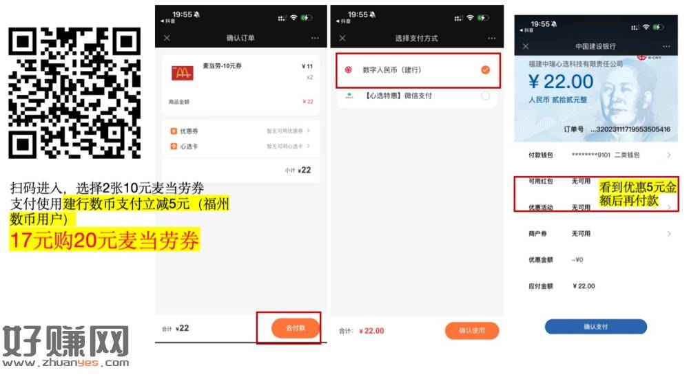 小毛 润1.6,限福州建行数币用户参与,扫码进入选择麦当劳1