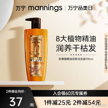 百亿补贴,37亓 ,欧莱雅精油润养洗发露700ml,