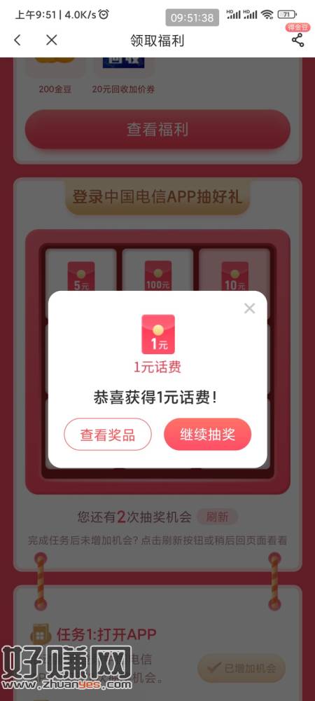 电信12月抽奖 看脸 中了记得去电信手机营业厅app领取使用