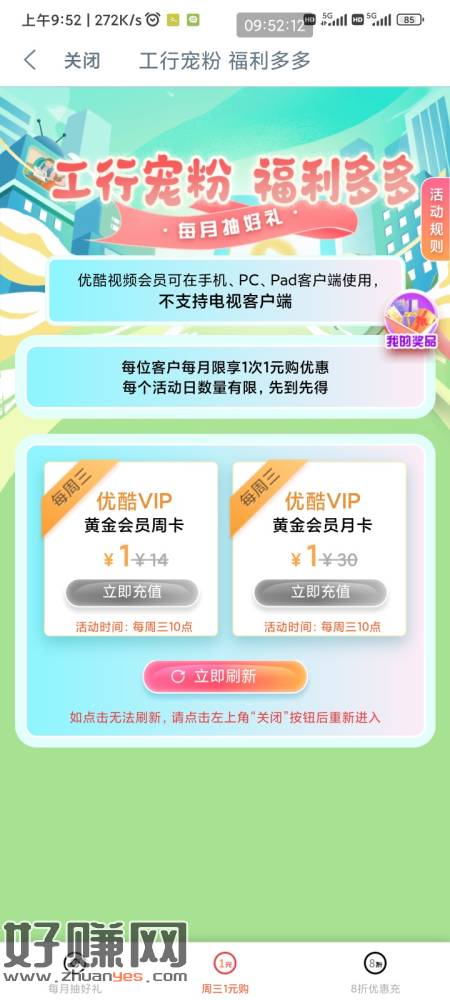 10点工行APP-生活-全部-优酷 一元购优酷会员 可自用可代充