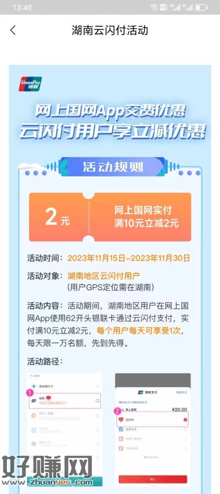 网上国网APP交电费跳转云闪付10-2(湖南地区)每天可享受