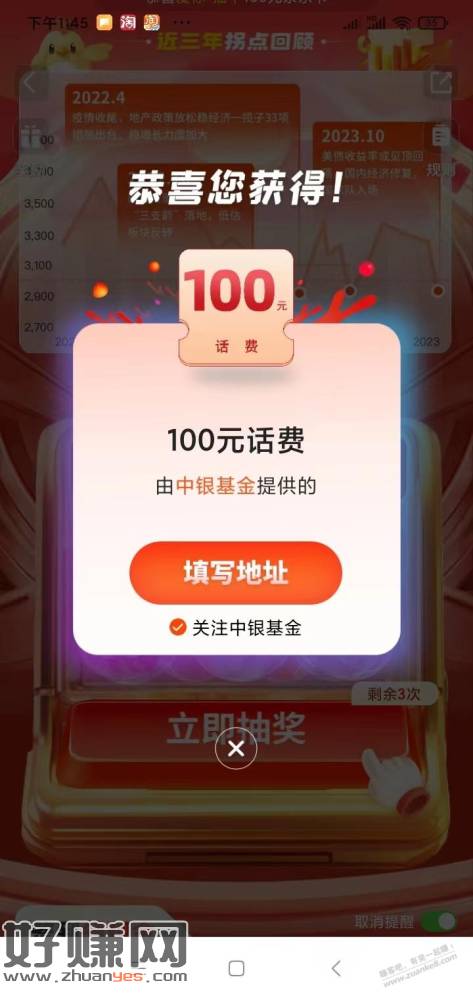刚中了个100话费,水不水不知,这个号中现金近20外加100话费。