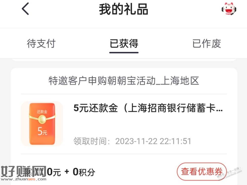 需要有上海地区招行储蓄卡,买100朝朝宝即可领取