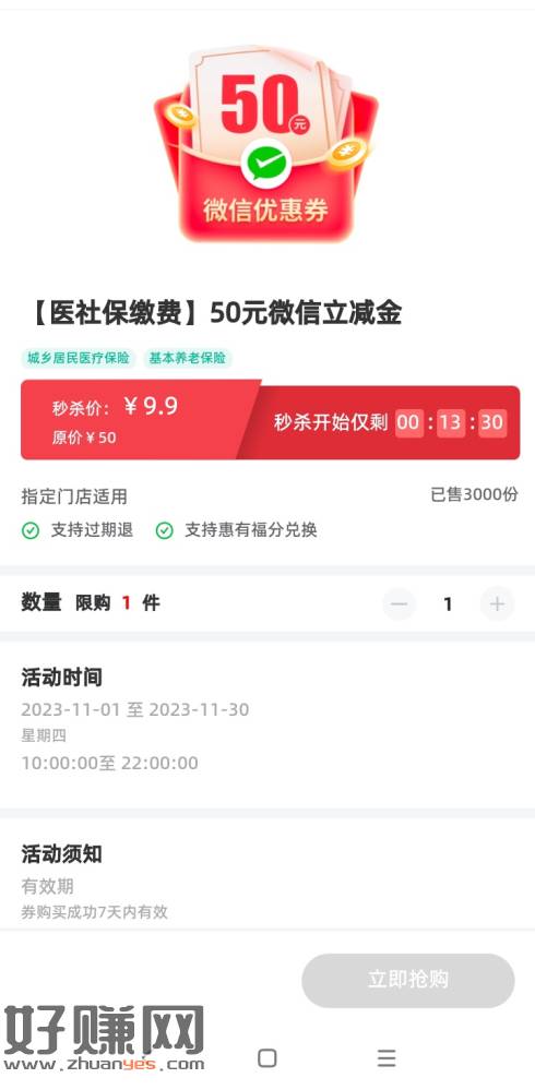 10点福建农行9.9购50医保微信立减金。兑换码可以出鱼,不然也能退款。