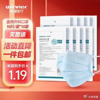 稳健 医用外科口罩 无菌级 ,10只/袋*10袋