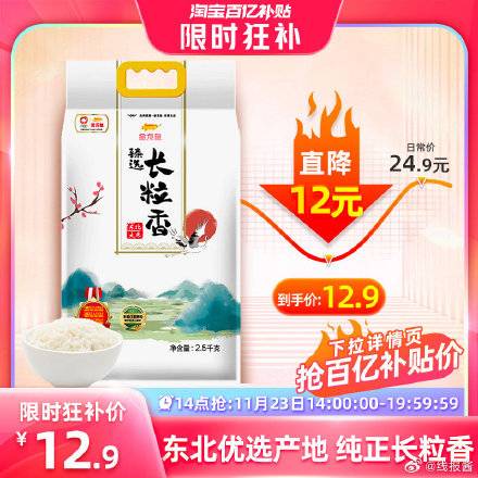 百亿补贴,12.9亓 ,金龙鱼臻选长粒香米2.5KG